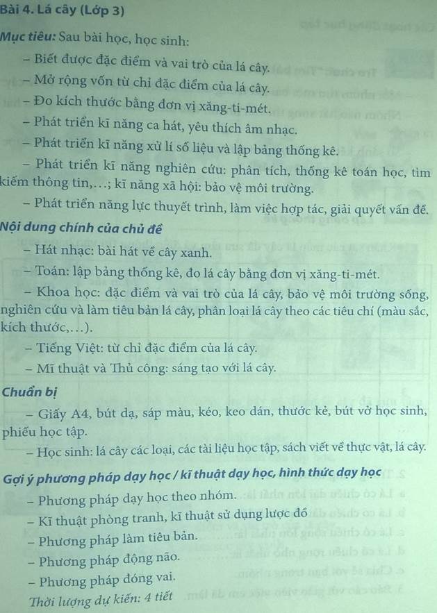 Dạy học tích hợp trong môn Tự nhiên và xă hội,