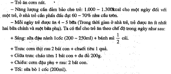 Biết rằng: Năng lượng ở trẻ 2 tuổi trong ngày là 1200