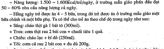 Biết rằng: Năng lượng ở trẻ 3-4 tuổi tại trường đạt 60% tổng năng lượng trong