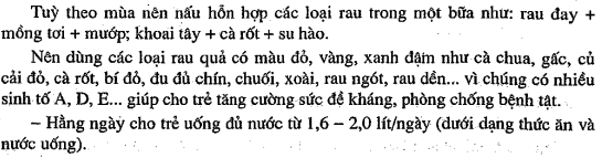 lượng prôtêin, lipit, gluxit mà trẻ 2 tuổi cần đạt trong 1 ngày.