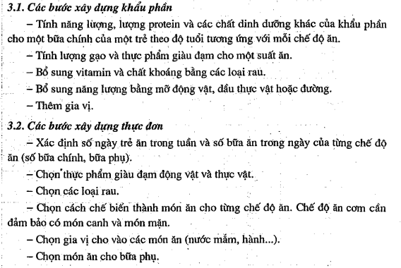 lượng prôtêin, lipit, gluxit mà trẻ 5 tuổi cần đạt trong bữa ăn chính và bữa