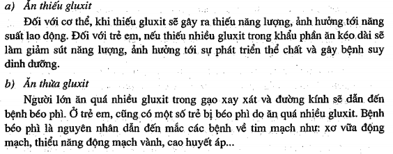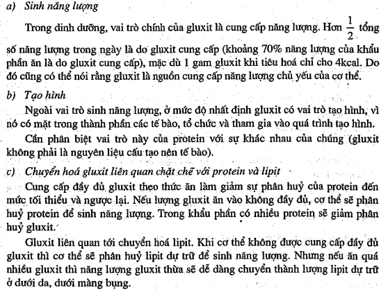 1 gam chất gluxit cung cấp 4 Kcal hay 16,7 KJ.