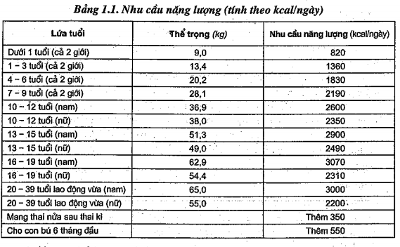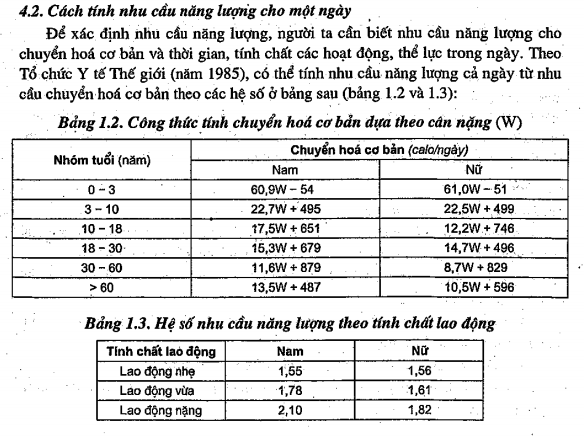 cần 830 Kcal/ngày, trẻ 4 tuổi nặng 20 kg cần 1400 Kcal/ngày.