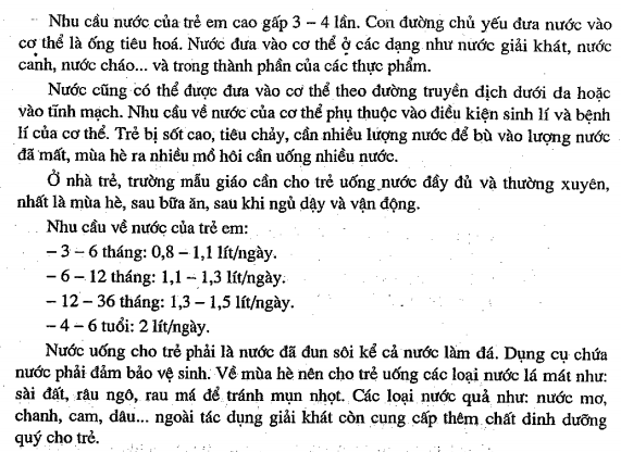 lượng tính theo cân nặng cao hơn trẻ 4 tuổi. Biết rằng trẻ 1 tuổi nặng 11 kg