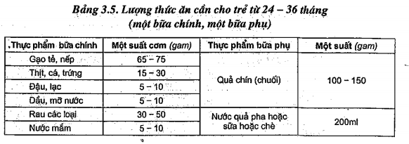 nát, trẻ 25-36 tháng cho trẻ ăn cơm thường.