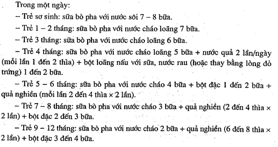 bữa/ngày. Ở nhà trẻ thường cho trẻ ăn 2 bữa cháo, nếu có điều kiện thêm 2 bữa