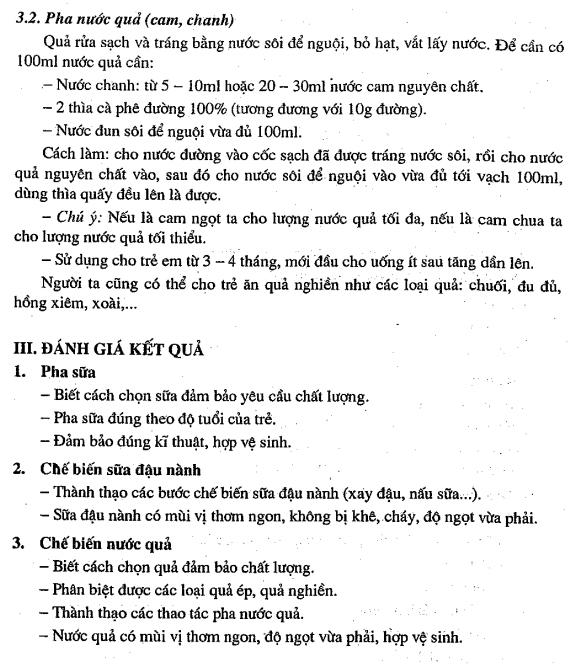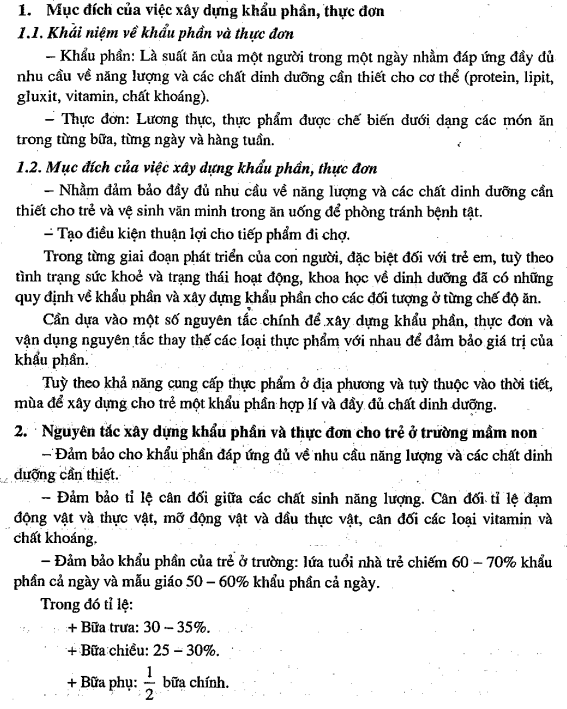 phụ ở nhà trẻ, đảm bảo cung cấp 60% NL cho trẻ.