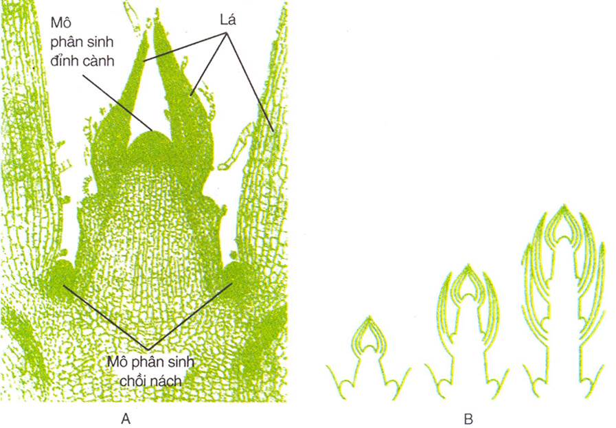 - Mô phân sinh ngọn: phân hóa cho ra