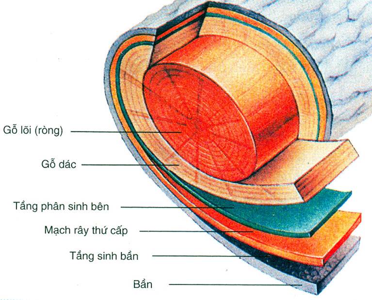 bì; Giữa là tầng sinh vỏ; Trong cùng là tầng sinh trụ.