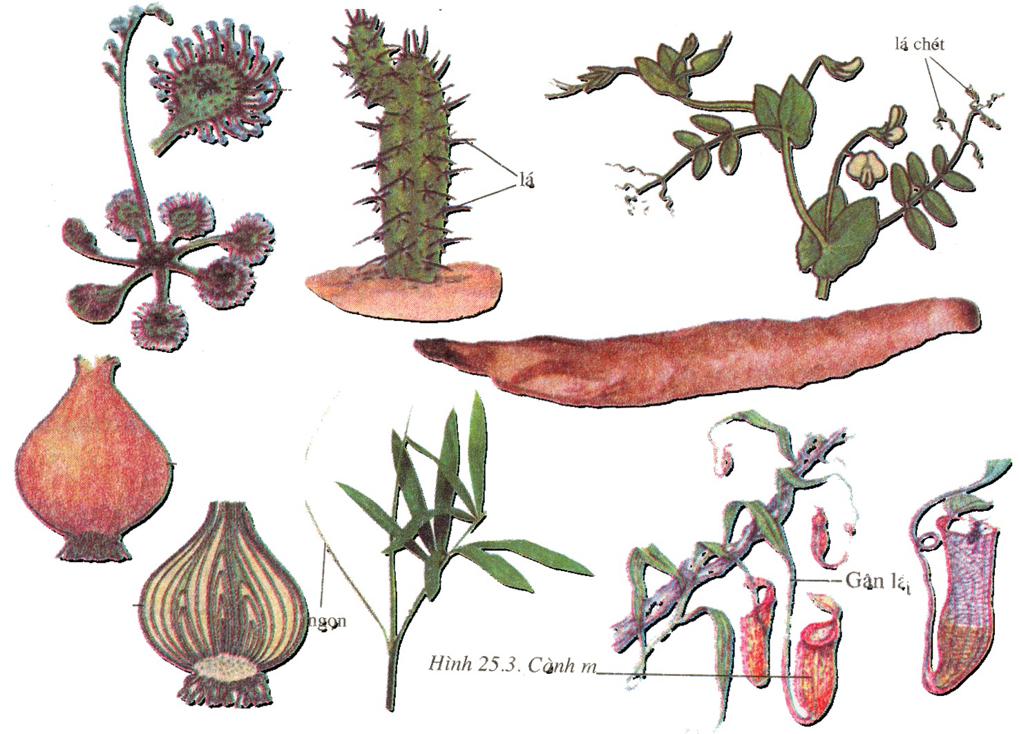 thành các bộ phận sau đây: vẩy, gai, tua cuốn, lá bắt mồi, ...