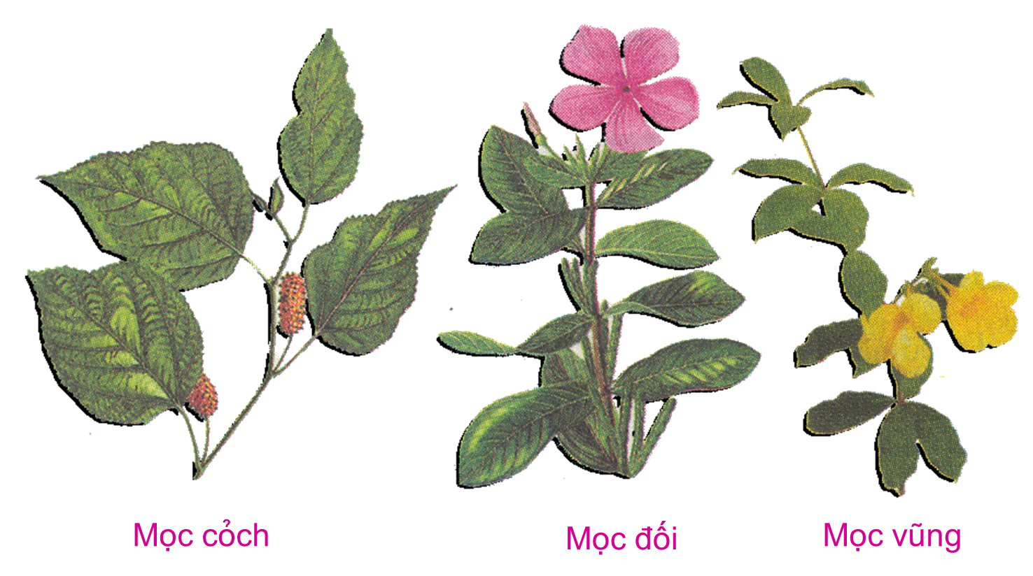 Mọc cách; Lá mọc đối; Lá mọc vòng